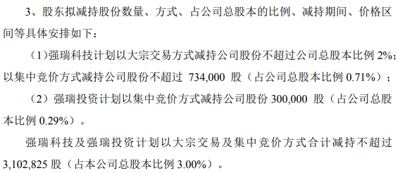 公告称,本次减持主要是出于强瑞科技偿还银行贷款、改善财务结构、布局业务架构,强瑞投资部分合伙人偿还个人借款,以及各股东改善其个人生活的需要。